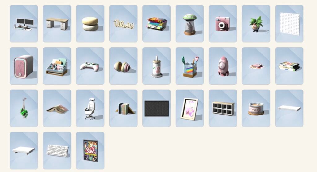 使用此套件中的装饰,通过植物、杂物和游戏配件,让您的电脑区域感觉温馨、放松,完全属于您自己。甚至还有立方体的小隔间,用于展示小摆设和其他让您开心的珍贵物品!