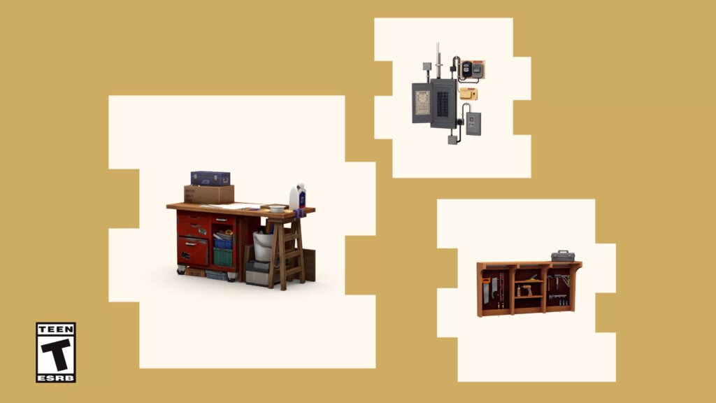- 功能空间— 创建一个研讨会,激励模拟市民提高技能!这个空间有模块化的架子,所以你会有充足的存储空间,还有热水器、保险丝盒、落地扇和木工长凳等互动物品。