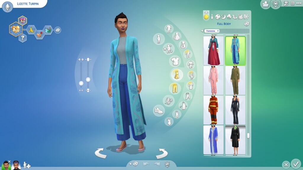 另一件在《模拟人生 4》补丁中没有在补丁说明中提及的偷偷摸摸的事情是 CAS 中的新女性服装!玩家现在可以为女性模拟人生提供东南亚时尚风格的全身服装。这套服装的特点是衬衫被塞进裤子里,搭配宽松的裤子和长及脚踝的套头衫,上面有各种图案和颜色的叠层。