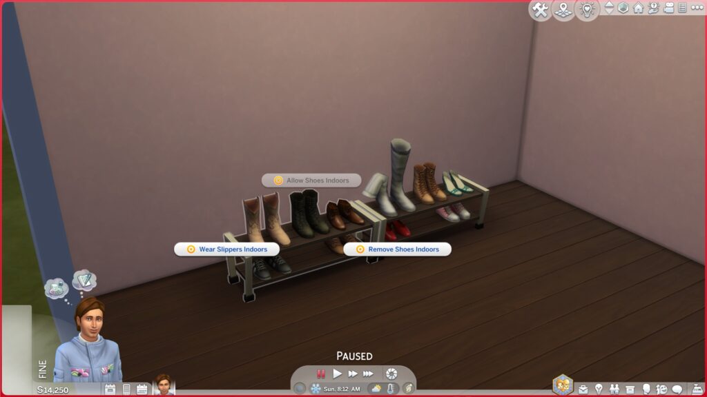 《The Sims 4 Snowy Escape》中引入了室内鞋规则,但现在此功能已引入到基础游戏中。您可以单击任一基础游戏鞋架来设置家庭的室内鞋规则。告诉西姆斯脱掉鞋子,赤脚/穿袜子,或者换上拖鞋。