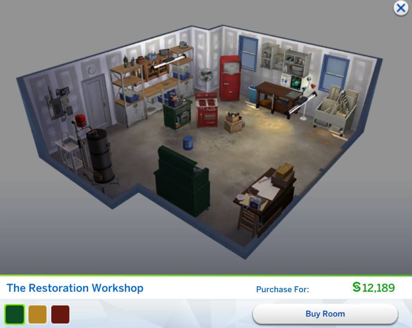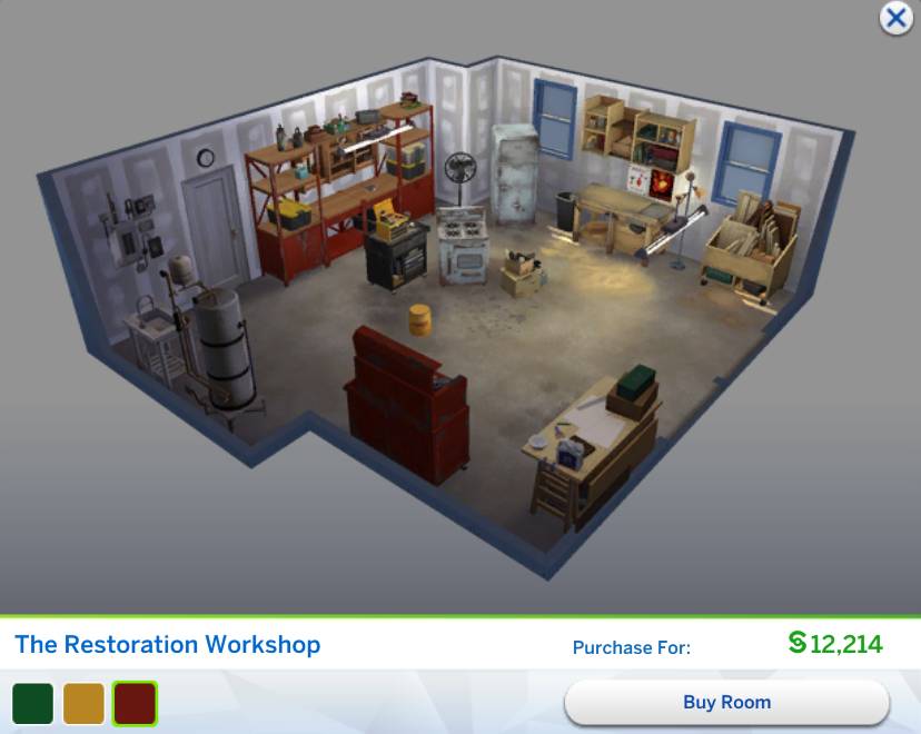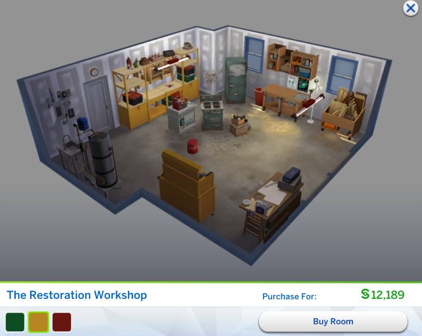 与过去的几个套件不同,《The Sims 4 修复工坊》套件包含一个风格房间,恰如其分地命名为“修复工坊”,共有三种风格,售价 §12,189!