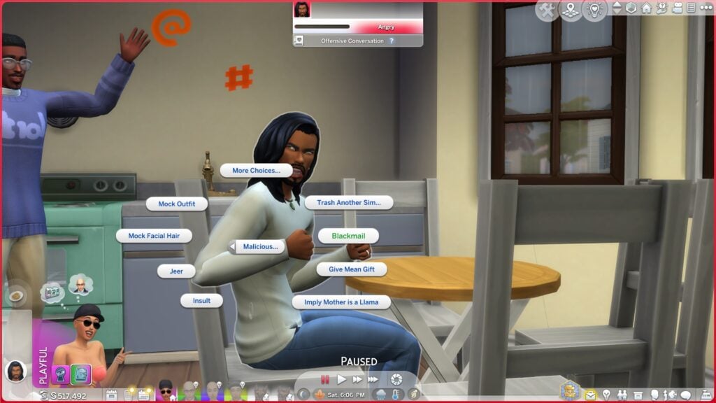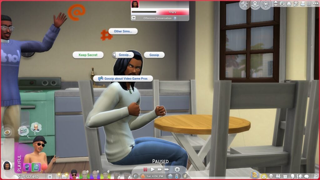 但更恶意的模拟市民可能会倾向于利用这些秘密来谋取私利。当您发现有关模拟市民的秘密后,您可以向模拟市民询问该秘密。 “对抗秘密”社交位于社交饼菜单中的“友好”>“八卦”下。一旦你向模拟市民询问某个秘密,你可以选择为模拟市民保守秘密或勒索他们换取模拟币。保守秘密位于友好 > 八卦下。勒索位于“恶意”>“恶意”下。