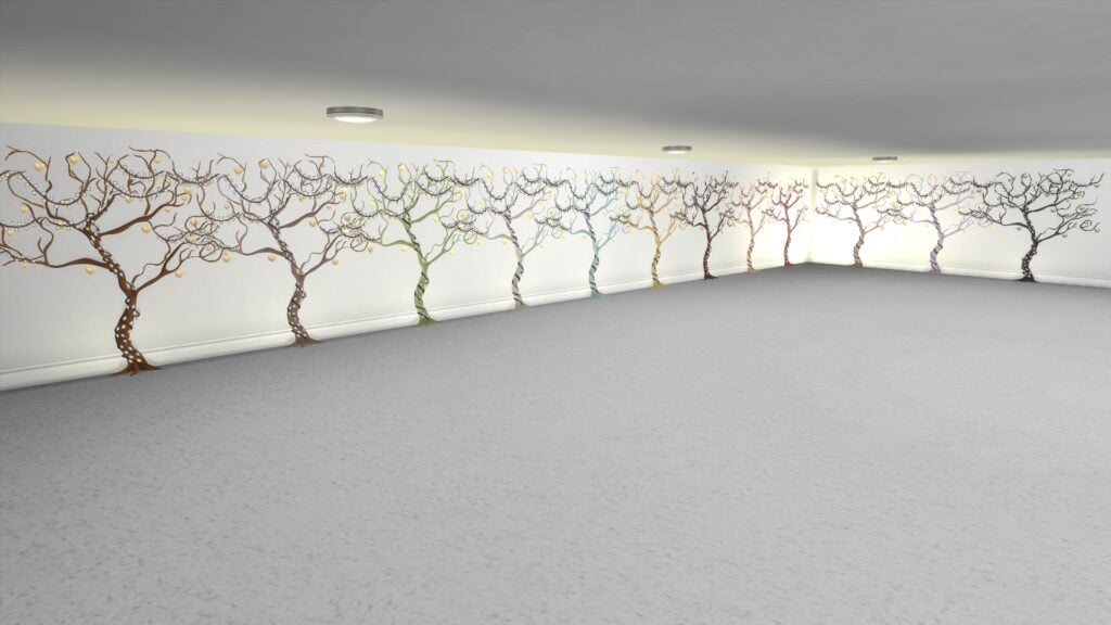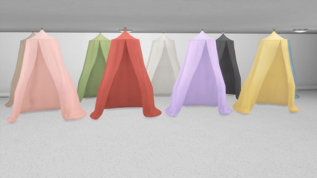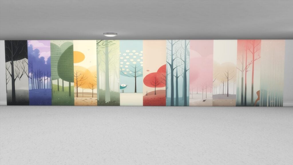 我们对《模拟人生 4》幼儿园 CC 附带的精美壁纸也爱不释手。色板非常多,每个色板都在您孩子的卧室里描绘出四季美丽的森林场景。这绝对是令人惊叹的,我们可以看到自己在任何地方都使用它,而不仅仅是在婴儿房中。我们还喜欢 Syboulette 将婴儿床和上面的窗帘制成两个独立的部分,因此您可以选择是否需要窗帘。窗帘和天花板灯也有所有三种墙壁高度!