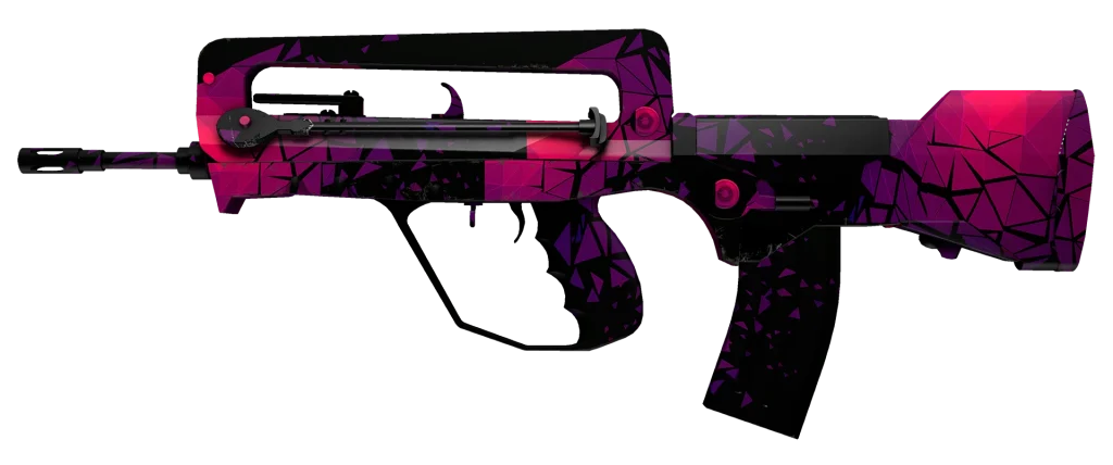 FAMAS 是一款经济实惠的步枪,经常被玩家在游戏早期阶段使用。该武器的脉冲皮肤采用蓝色和紫色设计,赋予其充满活力和未来感的外观。它的侧面还有一个跳动的心形徽章,增添了整体的酷感。