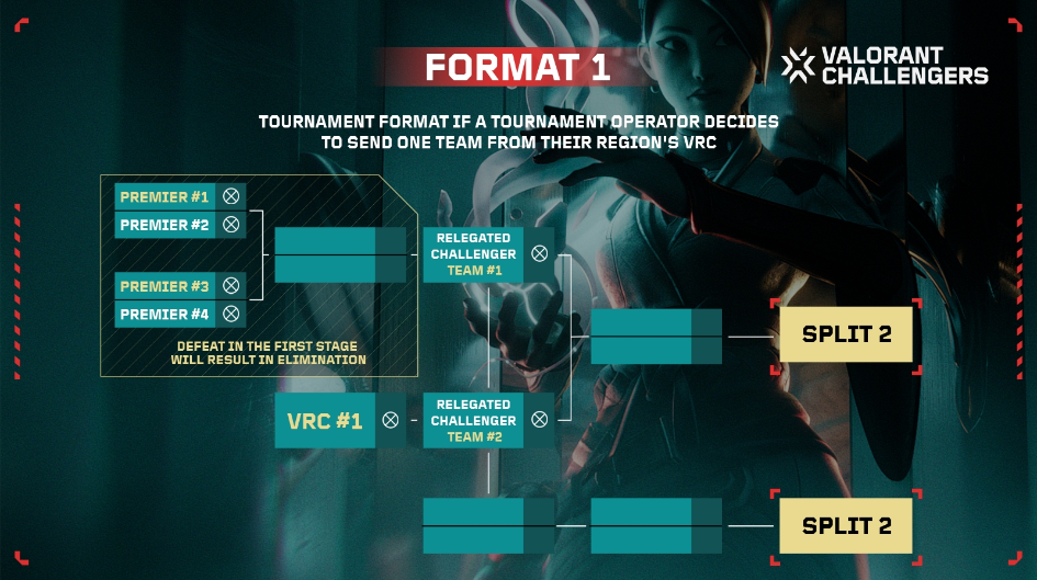 - 该地区 VALORANT 地区巡回赛 (VRC) 的前四名球队或 VRC 的获胜球队(没有 VRC 的地区将只包括前四名英超球队以及两支降级球队)