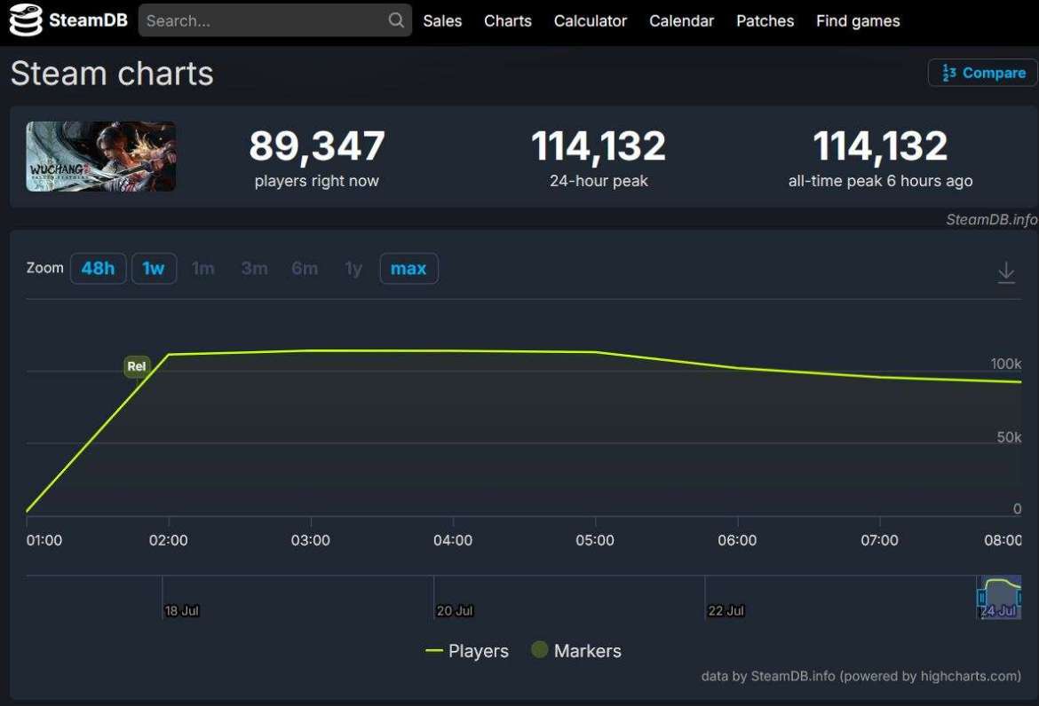 根据 Steam 玩家统计数据(来自蒸汽数据库),《无常:落羽》上线仅 6 小时,数字发行平台同时在线人数就达到了历史最高的 114,132 人。对于不是由 FromSoftware 开发的类魂游戏来说是最高的。尽管游戏收到“” 评论,截至撰写时。