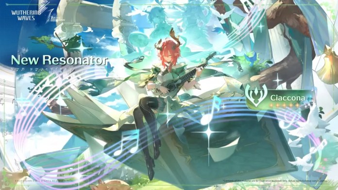 下一个五星级共鸣器是 Ciaccona。恰科纳出生于一个热爱诗歌和音乐的家庭,能够演奏多种乐器,并相信每种乐器都有自己的故事。她是一名使用手枪武器的航空共鸣器。她的共鸣能力具有召唤印记,可以在战斗中协助盟友,使她成为强大的支援单位。