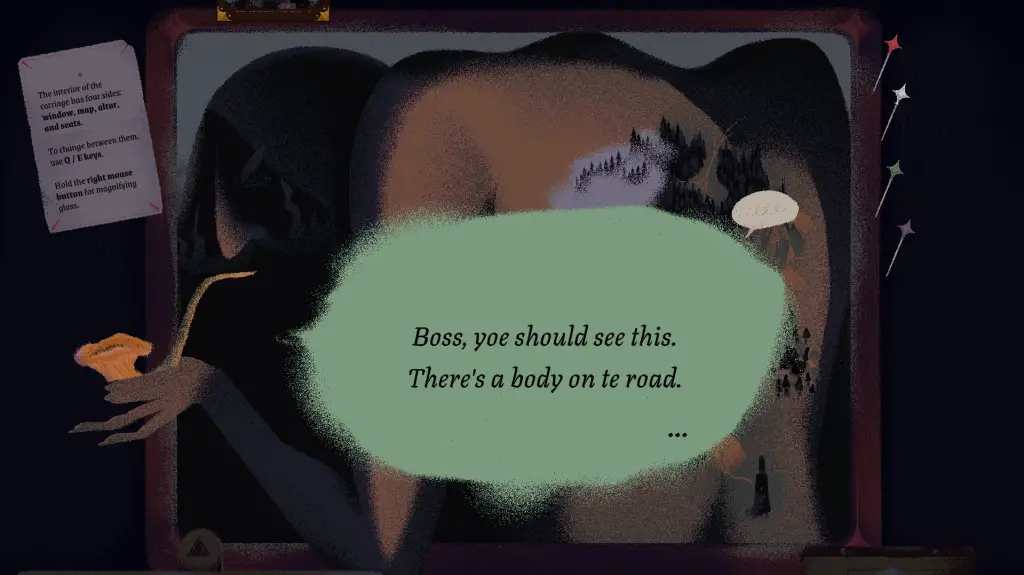 你的馬車也可以作為基地,儘管它可能隱藏著自己的秘密。當你在箱子之間旅行時,你將使用刻在車夫背上的地圖來選擇目的地,並追逐與更廣泛的神秘情節相關的線索。你的放大鏡可以揭示過去的迴聲,讓你在拼湊每個謎團時查看物體和場景以前的狀態。